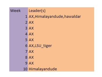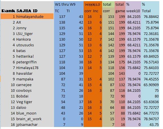 ~~~~~~~~Week 10 Results~~~~~~~~~~ Congrats!!! Himalayandude.