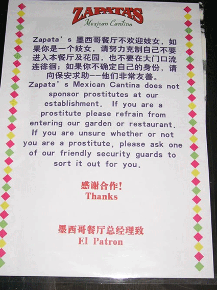 Are you a Prostitute? Take the test... … If you are unsure… or so it seems the help desk at this Mexican restaurant can help you find out if you are a prostitute or not… Hilarious…