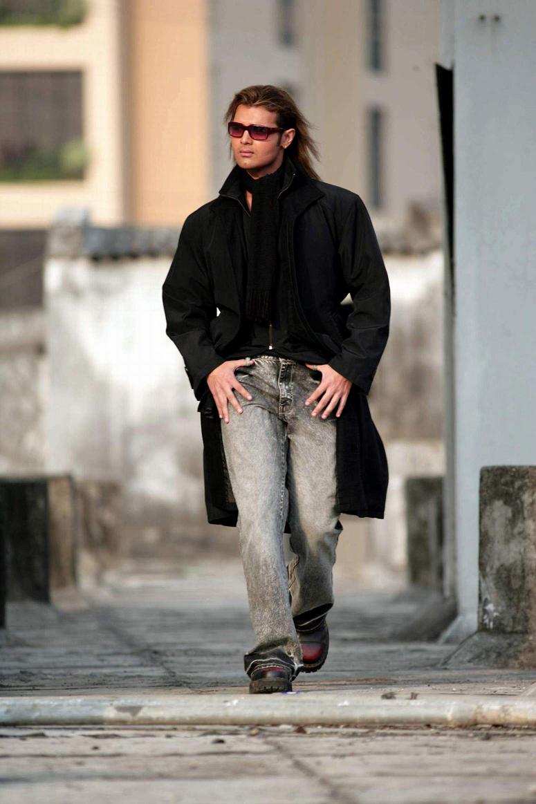 he looks gay :S what is he wearing? a camisole?? his dad mithun was much much better..kaale kaale hissi pareko :D