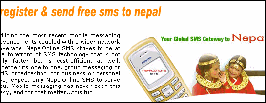 Hey Sayami thanks for your reply....I'm about to register it right now but hey....but how does this thing work...I'm going through this page in that website ...it says its from cell to email address...not exactly to cell in Nepal...but the picture on that page shows from cell to the cell...can you tell me...that when you send text messege...do you send it to cell or just a regular email address...I actually wanted to send it from cell to cell...just like text messege...not from cell to email...any suggestions???????