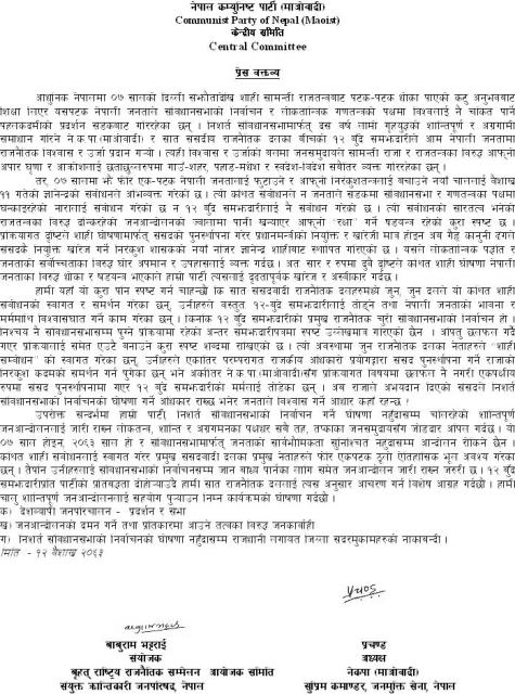 Here is you answer...Statement by CPN Maoist..... (file attached)
