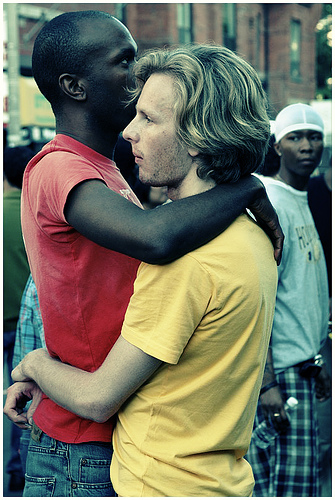 sanas Both are men ...........at Toronto's 2006 Gay Pride Parade. By the way why the hell are jealous about these two men being together ?