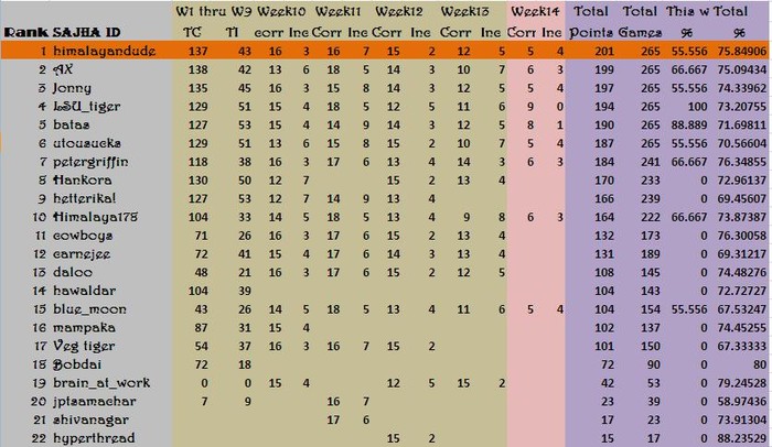 Week 14 Results!!!!!!!!