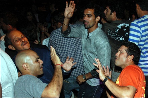 Pak Players and Indian Players with exhausted King Khan after dancing
