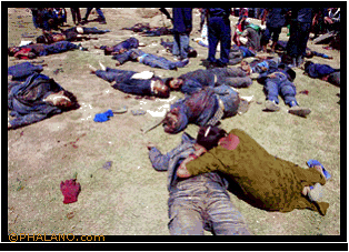 मिस्टर भट्ट् राई र मिस्टर प्रचण्ड, ल अबत राजाले गल्ती गरे, दरबार त्यागे तर तिमिहरु द्वारा नेपाल का सोझा सिधा जनताको हत्या भएको छ। त्यसको छानबिन हुनेकी नहुने? तिमिहरुलाई ससक्त कार्बाही हुने कि नहुने? यसको जबाफ दे हत्यारा हरु। ल हेर तल का फोटोहरु तैंले कसरी नेपाली निमुखा जनताको हत्त्या गरिस। अब संम्पुर्ण नेपाली जनताहरु यिनिहरु को बिरुद्दमा खुलेर लाग्नु पर्छ। बाबुराम र प्रचण्ड लाई झुण्डयाउनु पर्छ।