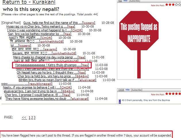 Chor bro, I can no longer post in that thread. I have been flagged. If I am flagged in another day within 7 days, I will be banned all together. Finally Tyranny, by the will of majority, has arrived in Sajha.