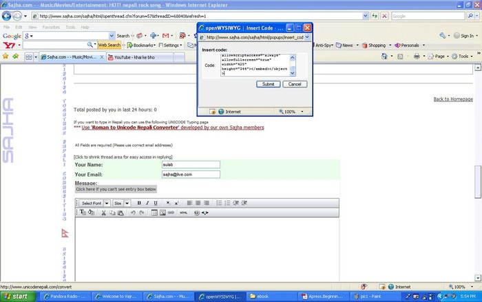pkr boston ji, that was for zebiv ji, how to embed given video in sajha from you tube? And if you are asking how to save that video in your computer. then there are few ways to do so. Install Real player. And as soon as you hover your mouse above most of the video in most of the sites. It will give you option to download video. Or you can install youtubedownloader. here is the link for that. http://youtubedownload.altervista.org/ http://youtubedownload.altervista.org/ hope that will helpyou. good luck.